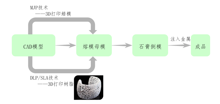 蠟型3D打印機(jī)打印蠟?zāi)#s短了工藝鏈,提升了設(shè)計(jì)自由度。推動(dòng)設(shè)計(jì)往定制化、更復(fù)雜或者獨(dú)特的設(shè)計(jì)、數(shù)字化制造方向發(fā)展。